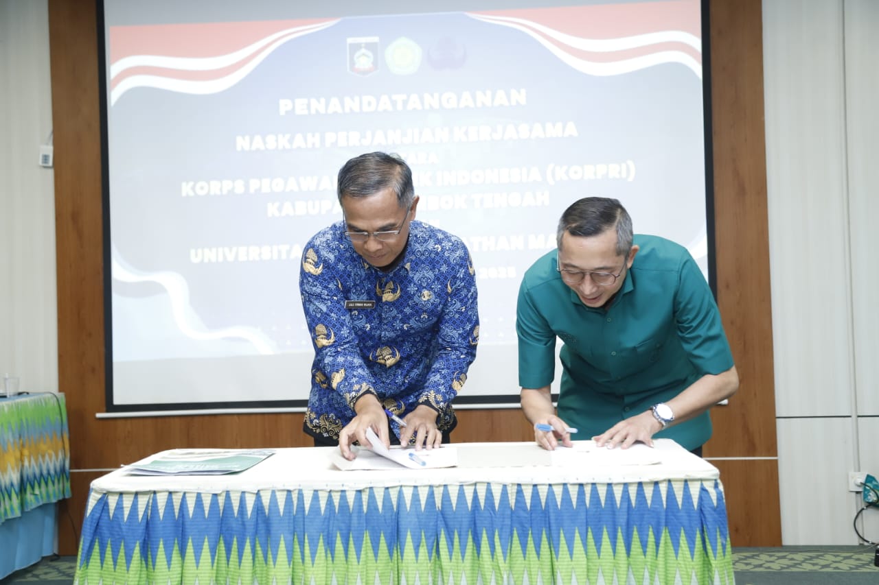Penandatanganan PKS dilakukan oleh Rektor UNW Mataram, H. Lalu Gede Syamsul Mujahidin, dan Ketua Dewan Pengurus KORPRI Lombok Tengah, H. Lalu Firman Wijaya.