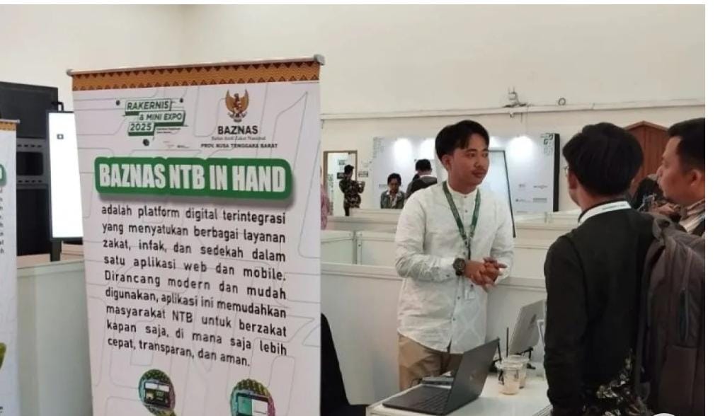stan pameran, pengunjung diperkenalkan dengan BAZNAS NTB in Hand, sebuah platform terintegrasi yang merangkum berbagai aplikasi digital hasil pengembangan lembaga tersebut dalam beberapa tahun terakhir. Platform ini menampilkan layanan berbasis data mulai dari penghimpunan, penyaluran, hingga pemetaan mustahik.